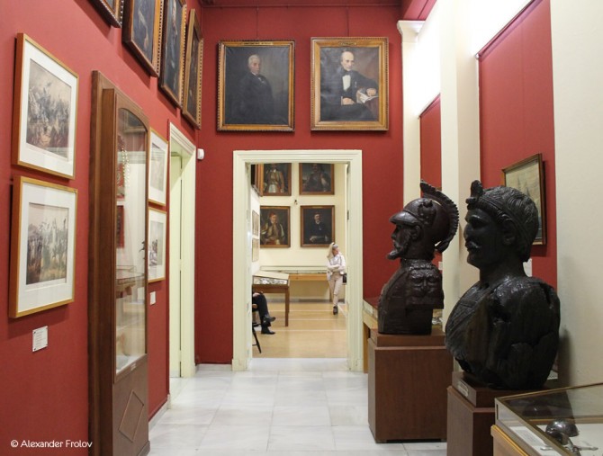Исторические музеи зачастую посещать не принято, а если и принято то откладываются такие посещения “на потом”. Что там? Портреты героев? Афинский исторический музей из этого ряда не исключение, но есть несколько “но”. Основан музей был в 1882 году Элефтериосом Венезелосом и посвящен новейшей истории Греции от падения Константинополя в 1453 году и заканчивая войной с итальянцами в 1940 году, с упором, конечно же, на освободительную войну с турками. Портретов героев здесь действительно немало, но немало также и артефактов. Таких как оружие и снаряды, найденные на месте самого большого сражения в мире - наваринской битвы. Тут же и личные предметы выдающихся личностей - и не просто предметы - очень много предметов. Количество в данном случае имеет значение. Отдельного упоминания заслуживает батальная живопись, более близкая по форме к иконографии.