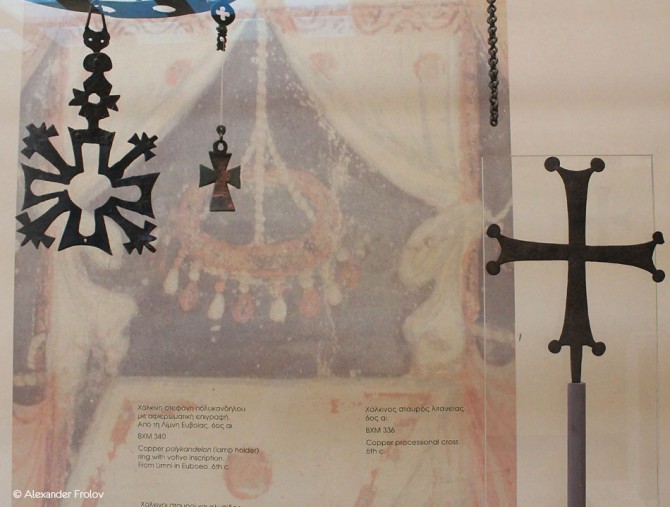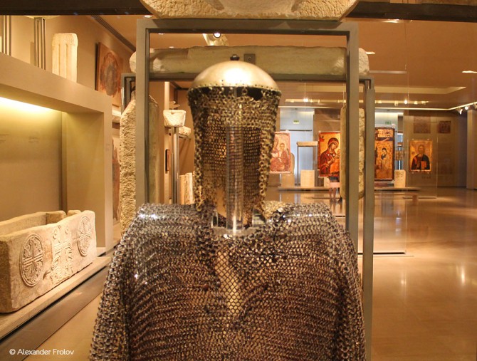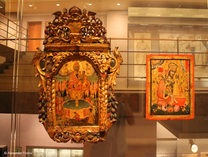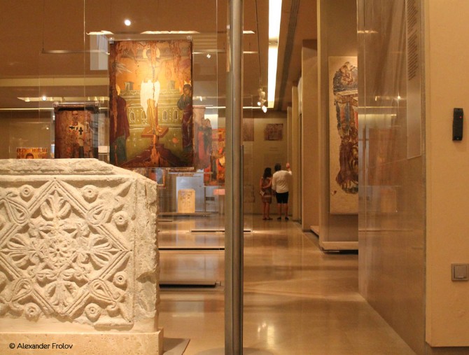 Экспозиция музея, который еще называют Православной сокровищницей Греции, напоминает путешествие во времени - стилистически коллекция весьма разнообразна. Тут можно увидеть деревянный иконостас XVII века, фрагменты стен византийских храмов с фресками, есть даже полностью воссозданный интерьер храма XI века и базилики V века. Очень интересна коллекция “двусторонних” икон. Когда-то, в X - XIII веках они зачастую не висели на стенах храма, а как бы “парили” в воздухе.