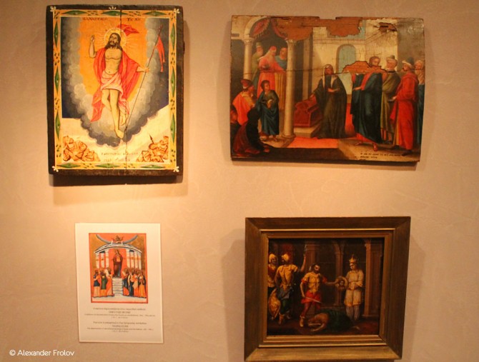 Эта часть коллекции достаточно консервативна, но уже в следующем зале начинаются “вольности”. Особенно в этом плане интересна ионическая школа – «вторжение» искусства светского в область искусства духовного. Это выражается в цвете - он становится откровенно «кричащим» и в форме - во внешнем облике икон все большую роль начинает играть оформление. Зачастую доходит до балансирования на грани китча - некоторые иконы откровенно напоминают хохлому, другие же вполне сошли бы за итальянскую светскую живопись, но с неизменной золотой рамой. Есть даже круглые иконы.