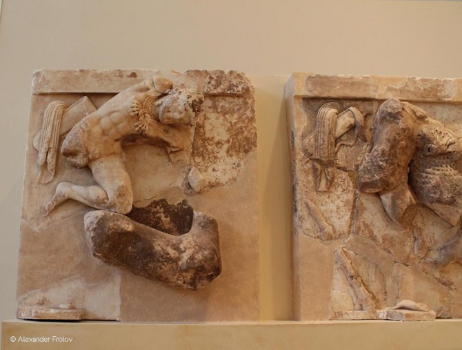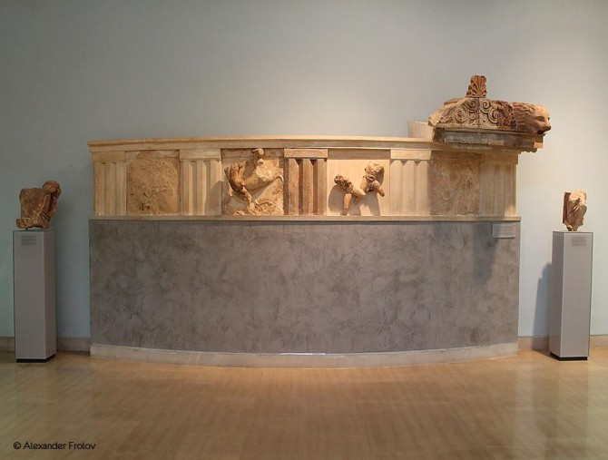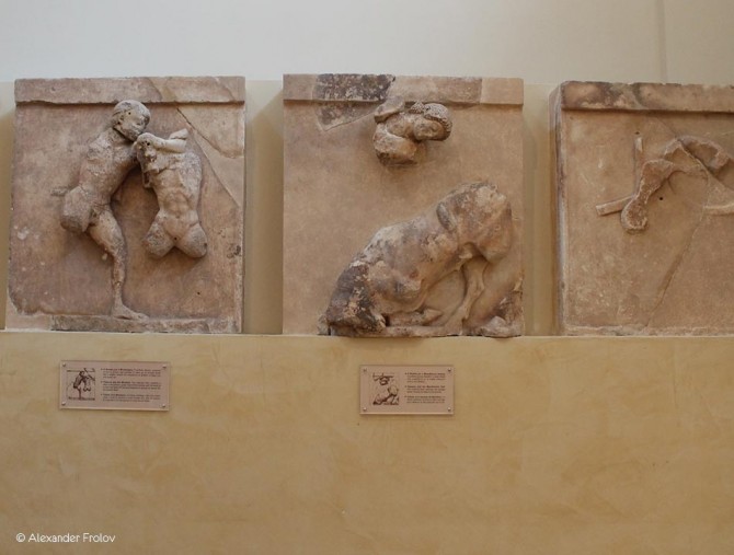 Starting our tour at the museum, from the Halls I and II, we do a flash back in the early years of the sanctuary, before the cult of Apollo, and the transition to the new era and the new cult. The Hall III of the Early Archaic period is dominated by the impressive pair of lifesize Archaic Greek statues, the Twins of Argos. The Hall IV presents the precious, gold and ivory offerings from the cities of eastern Greece, while the Hall V houses parts of the luxurious Siphnian Treasury (among them, there is the Naxian Sphinx). The imposing temple of Apollo is the theme of the Hall VI, including architectural elements and the pedimental compositions of the archaic and classical temple. Moving to the Halls VI and VIII, we can admire the sculptural decoration of the Athenian Treasure, the only building of the archaeological site of Delphi which is completely restored. The sculptural and written clay decoration of the two treasuries of the sanctuary of Athena