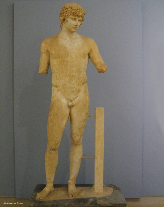Pronaia, three bronze statuettes-offerings, the Piper and the Cluster of the Two Athletes are among the exhibits of the Hall IX, all dated in the 5th Century BD. The Hall X presents the Dome, the circular building of the sanctuary of Athena Pronaia. In the Hall XI of the late Classical-Hellenistic times, you will be impressed by the Cluster of Daochos, the Navel, which was the symbol of the Delphic Oracle, and the Spiny Column with the Dancers. In the Hall XII, the Frieze of the impressive offering of Aemilius Paulus launches the series of the monuments of the Roman history in the sanctuary –among them there are the Circular Aaltar of Athena Pronaia, the Antinoos, the portrait of Flamininus and representative Roman metalwork. One of the most important exhibits of the museum and one of the most famous ancient statues in the world is the Complex of the Charioteer, in the Hall XIII, which is preserved thanks to a great earthquake in 373 BC, which buried