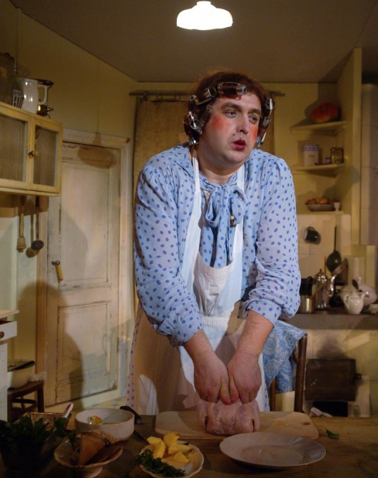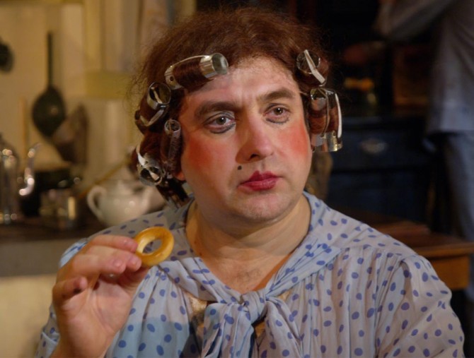 “Sonja” is written by Tatyana Tolstaya, a Russian writer, TV host, publicist, novelist and essayist from the Tolstoy family (her grandfather, also a writer, was a distant relative of Leon Tolstoy). Her play is about a lonely woman in the ‘40s, who tries to deal with the burden of existence and the vicissitudes of everyday life with a positive outlook, while she’s waiting for her prince to come. The famous Latvian director Alvis Hermanis, one of the founders of the New Riga Theatre in 1992, is known for his artistic approach which combines the bare aesthetics of the German school and the playful, robust acting of the Russian. He chose to give the role of the rather ugly and silly, but so kindhearted Sonja to a male actor, making things even more interesting.