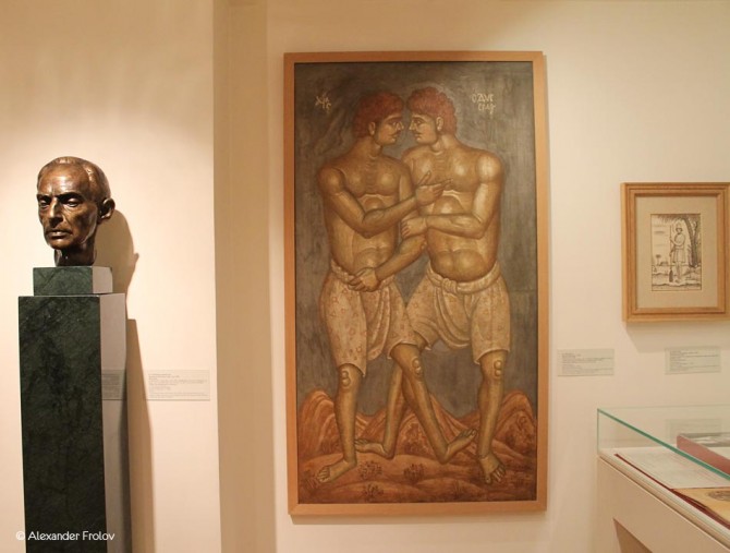From the ground floor up to the third floor, the visitors take a short but comprehensive trip to the world of the spiritual and artistic creativity of Greece in the years between the end of the World War I and the Asia Minor disaster until the eve of the dictatorship in 1967. Works of art, manuscripts, publications, photographs and personal belongings of two hundred and one Greek artists and intellectuals will guide us in the world of ideas in Greece of the twentieth century.