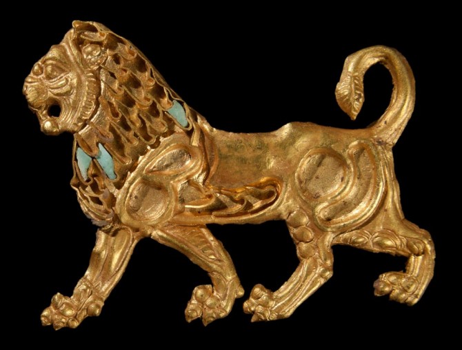 05: Изображение льва в золоте. Вероятно привезенный из Персии трофей солдатами Александра Македонского после возвращения из экспедиции. IV век до н.э.