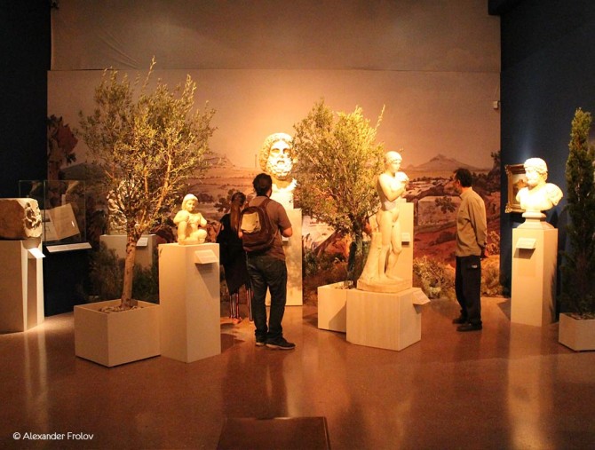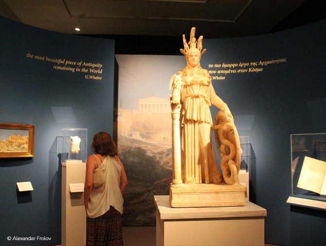 Среди экспонатов вы увидите 22 иллюстрированных туристических издания того времени, соответственно на разных языках, картины маслом, акварели, гравюры и фотографии из библиотечных коллекций греческого парламента. Глядя на изображения различных бытовых сцен, пейзажи можно мысленно восстановить картину происходящего в Афинах того времени. Но экспозиция была бы неполной без оригинальных произведений искусства. Поэтому тут также представлены 35 мраморных статуй, многие из которых выставляются в первый раз. Довершает восприятие музыкальный ряд. Это музыка, которая была близка европейцам тех времен, а так же греческая музыка, записанная французским композитором L.A. Bourgault-Ducoudray во время его путешествия в Афины в 1874-1875 годах.