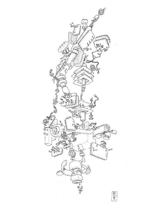 The exhibition constitutes a study on the graphisms that Papamichalopoulos developed in his first comic, entitled “The Japanese”, in 2000 (the third version of the successful album has just been published). Equipped with an inquiring look and a solid knowledge of the history of art, the Greek artist attempts a unique combination and integrates organically into his own universe the stylistic aftermath of Oriental art – the art of Hokusai and Hiroshi – together with the “Westerner” Yves Tanguy and Jean Dubuffet, affording to his work a greater depth.