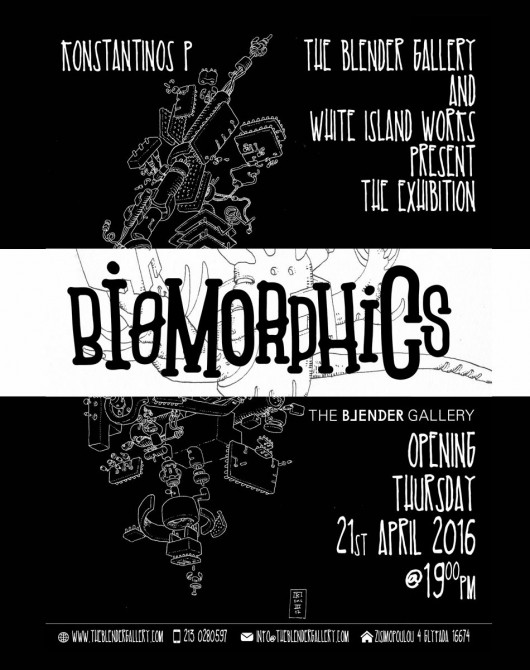 Exhibition “Biomorphics” by Konstantinos P., April 21 - June 1 2016, Blender Gallery, 4 Zisimopoulou street, Glyfada, tram station Angelou Metaxa. Opening hours Tuesday-Friday: 10:00 - 19:00, Saturday: 12:00 -16:00, Sunday-Monday: closed. For more info