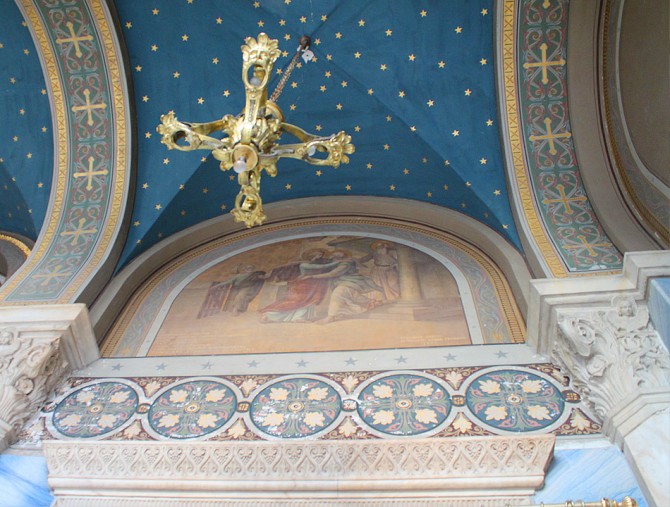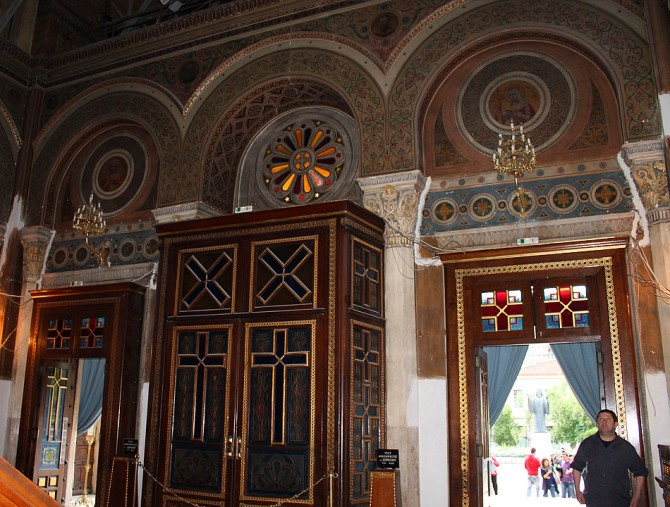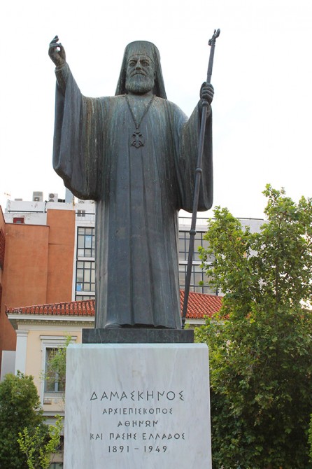 The majestic Metropolitan Cathedral of Athens, dedicated to the Annunciation of the Mother of God, is the cathedral church of the Archbishop of Athens and all Greece. The original plans of the church were made by the Danish architect Theophilos Hansen and the construction began in 1842. In 1846, the design was converted by the architect Dimitrios Jejas who added the Greek-Byzantine elements. After his death, the French architect FranÁois Boulanger finalized his work. It was completed in 1862, and for the construction have been used materials from 72 demolished churches. The Cathedral is a three-aisled, domed basilica, 40 meters long, 20 meters wide and 24 meters high, with two built towers in the corners of the west side. The frescoes in the interior, which are works of Spyridon Giallinas and Alexander Seitz, follow the Byzantine tradition, while the decoration was made by the painter Konstantino Fanelli. The sculptural architectural elements, the capitals and the pulpit were designed by the sculptor George Fitali. Inside the Cathedral, there are also the tombs of the martyr Patriarch Gregorios V and the Holy Filothei Athenaia, who were killed by the Ottomans during the Ottoman period. An earthquake in 1999 caused severe damage to the interior of the Cathedral, which has since limited its functionality. The repair works will be completed in 2015. Outside the Metropolitan Cathedral of Athens, there are the statues of two great figures of the Greek History: the one is Constantinos Paleologos, who was the last emperor of Byzantium, and the other is the Bishop Damaskinos, who was Archbishop of Athens and All Greece (July 1922-May 1949), Prime Minister and Deputy King of Greece.