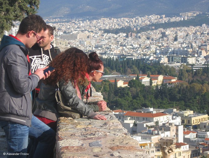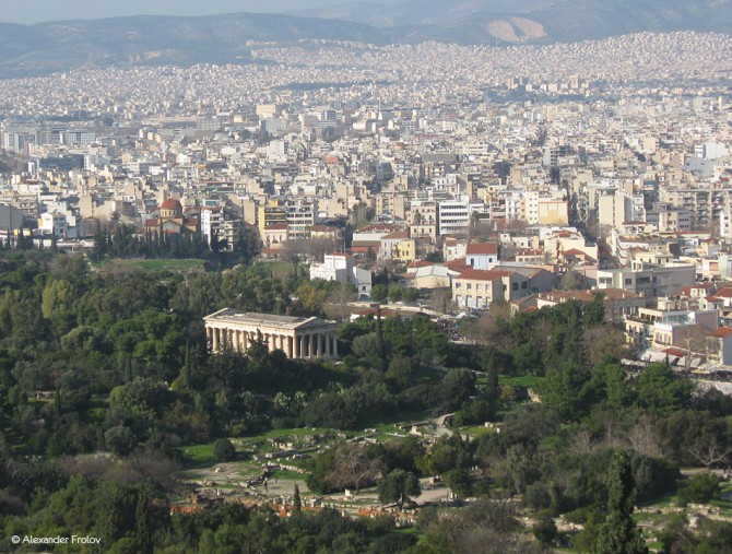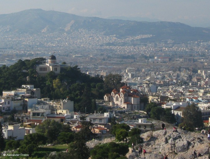 К сожалению в Афинах нет, что называется, мест полного погружения в античность. Для этого придется ехать куда-нибудь в Олимпию, например, или на худой конец в Сунио. Здесь же все время какие-то элементы и детали цивилизации отвлекают взгляд. И приходится мысленно пытаться абстрагироваться от наших дней. И Акрополь в этом плане не исключение. Впрочем в этом тоже есть свои плюсы: прочувствовать величие Парфенона можно как раз “на контрасте” с цивилизацией. Тут расположена одна из лучших (лучше считается только вид с горы Ликавитос - собственно благодаря возможности разглядывать сам Парфенон) смотровых площадок города, с которой, кстати сказать, видны и многие другие памятники античности - Храм Зевса Олимпийского, например. Храм Гефеста - наиболее хорошо сохранившийся храм античности на Древней Агоре, здание национальной обсерватории, здание греческого парламента, Монастираки, Национальный сад, дома Анафьотики, Плака - проще было бы сказать, что отсюда увидеть нельзя. И гора Ликавитус видна. Та, с которой лучший вид на Акрополь. И нескончаемые каменные джунгли до горизонта. Без них никуда.