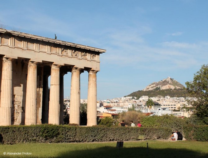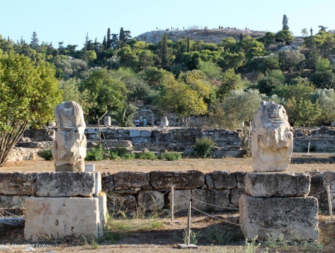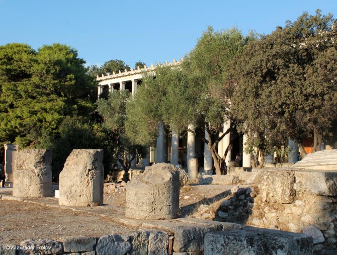 Афинская Агора в Греции — городская площадь Афин, занимающая территорию приблизительно 5 гектаров и расположенная на пологом склоне к северо-западу от Акрополя. Здесь пролегала главная дорога города Панайтинаик - ведущая от Парфенона к Дипилонским воротам. Греческое слово агора происходит от глагола со значением “собираться,созывать”. Это и соответствовало назначению этого места. Это было главное место встреч в городе. Люди приходили сюда и общались, и конечно, вся коммерческая деятельность была сосредоточена именно здесь. Агора также считалась “местом справедливости” - здесь происходили суды. Именно здесь приставал к афинянам со своими нелепыми (по их мнению) вопросами Сократ, за что впоследствии был казнен. А сегодня Агора стала излюбленным местом туристов, желающих познакомиться с историей древних Афин. Один из наиболее хорошо сохранившихся храмов на территории Агоры - это Храм Гефеста. Он был сооружен в период 449—415 годов до н.э. и был посвящен богу Гефесту. Архитектор храма неизвестен, но это, по всей видимости, тот же зодчий, который построил храм на мысе Сунион. Тут же останки Толоса 470 года до н.э., служившего штаб-квартирой для должностных лиц, останки Храма Аполлона, построенного в 325 году до н. э., целлы малого храмов Зевса и Афины, возведенных в 350 году до н.э.. Тут были две стои (стоя по-гречески означает портик, но в дальнейшем это было название дворца) - стоя Зевса Свободного и Королевская стоя. В последней располагалась резиденция Архонта Василевса, ответственного за религиозные вопросы и законы. Из христианских памятников до наших день дожил лишь один - Храм Святых Апостолов. Также на территории Агоры находится одноименный музей, в котором выставлены артефакты, найденные при раскопках в этом месте. На данный момент раскопки по-прежнему продолжаются. Для того, что бы “вскрыть” всю территорию понадобится снести порядка 400 современных зданий общей площадью 12 га. Попасть в музей и на территорию Агоры можно по тому же билету,что и при посещении Акрополя (12 евро) , по нему можно посетить и все значимые археологические объекты, или по отдельному, за три евро.
