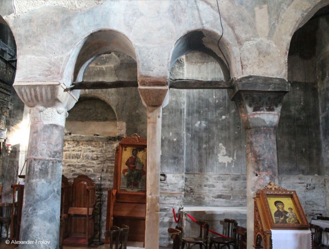 Еще одна жемчужина византийского периода в префектуре Арта - Храм Богородицы во Влахерне. Влахерна - небольшая, живописная деревня неподалеку от города Арта. Храм был возведен в X веке в форме тройной куполообразной базилики, но впоследствии форма его изменилась. Правитель Эпира Михаил II Комненос захотел возвести храм в знак раскаяния перед своей супругой Теодорой (которую после смерти стали называть святой) и попросту перестроил уже имеющийся в Влахерне. В саду перед храмом можно видеть мраморную табличку с упоминанием Архангела Михаила, покровителя семьи Комненос. Внутри самого храма находятся гробницы Михаила и двух его и Теодоры детей. Храм, кстати, изнутри очень напоминает как Храм Святой Теодоры, так и Храм Паригоритрия - те же внушительные колонны и почти не сохранившаяся до наших дней настенная роспись. Со старых времен сохранилась всего лишь часть мозаичного пола. Но главное здесь, что действительно сохранилось и ради чего стоит здесь побывать - это атмосфера мистерии. Это ощущение часто возникает во многих храмах византийской эпохи - от фресок уже мало что осталось, но их не восстанавливают - новодел тут излишен. Новых икон минимум, но и среди них бывают выдающиеся, а главное - ничего лишнего.