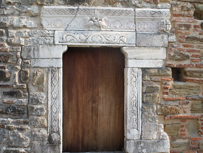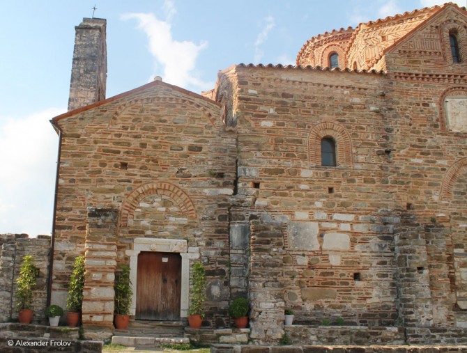 It is an imposing Byzantine church, located across from Arta, in the beautiful village Vlacherna. It was built in the early 10th century, as a triple-domed basilica, and rebuilt as domed cruciform in the 13th century (1250-1260) by Michael II Komnenos, Despot of Epirus (1230-126) and husband of St. Theodora. Outside the church, which is surrounded by a well-tended flower garden, there is a marble plaque dedicated to the Archangel Michael, the patron of the family Komnenos. Inside the church, there are also the tombs of Michael II Komnenos and his children. The wall paintings unfortunately are not preserved, but in front of the sanctuary we can still see a distinct part of the old impressive mosaic floor, in which are represented the five loaves of bread in peace. Among the valuable icons, there is the unique icon of Christ holding Virgin Mary in his palm. Inside the sanctuary, the sacred bones of St. Christopher are being kept. Church of Panaya of Vlachernes, Vlacherna, Arta.