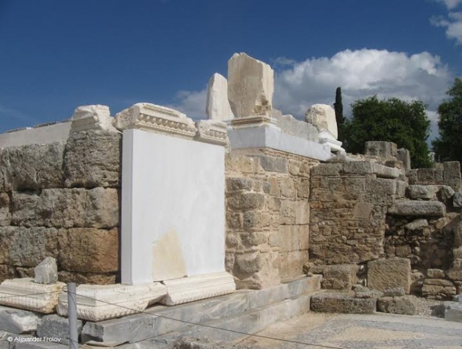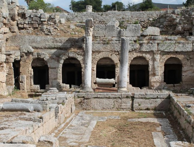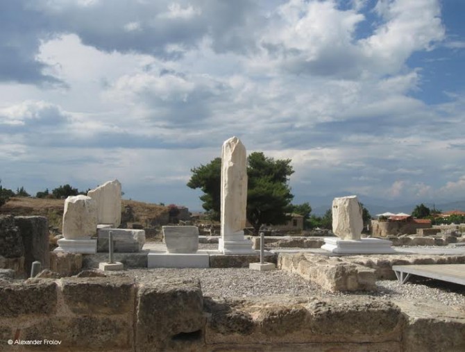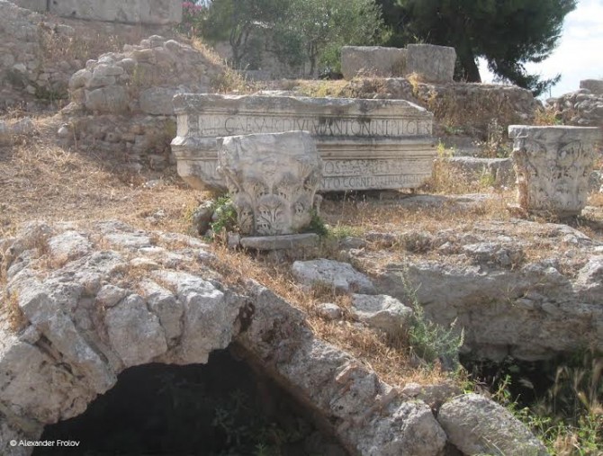 В 51 или 52 году нашей эры сюда прибыл апостол Павел. Тут можно видеть тот самый подиум с которого он обращался к Коринфянам, довольно неприметный.