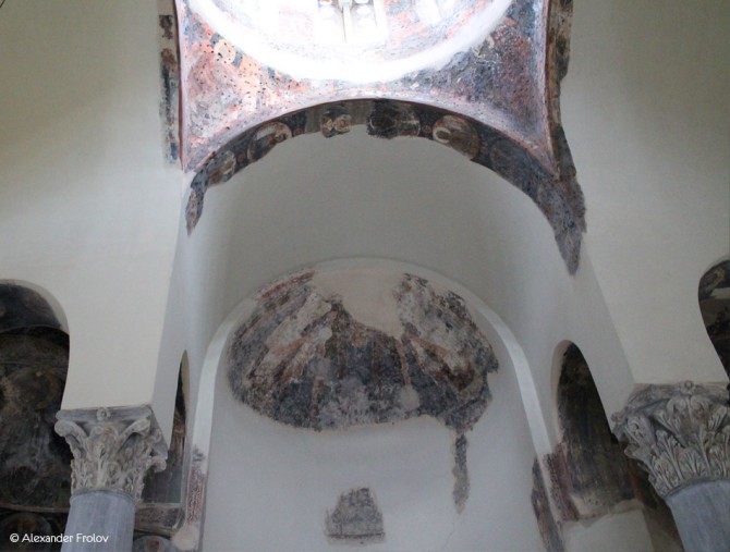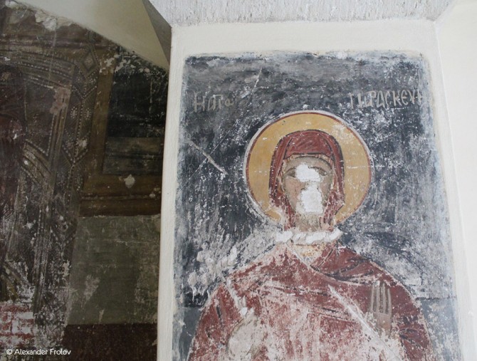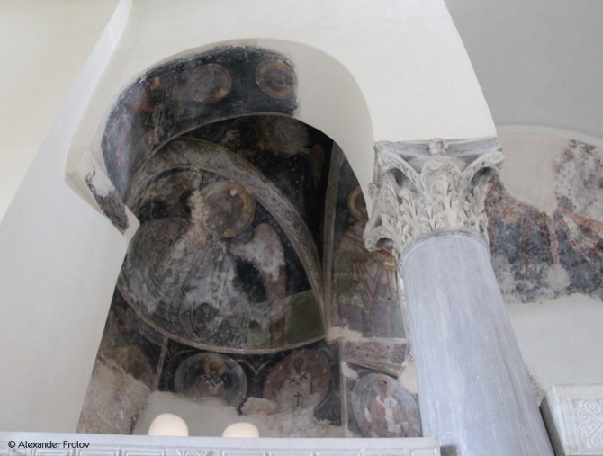 По свидетельствам исследователей, после первого этапа строительства северный притвор церкви был расширен, чтобы обустроить здесь саркофаг, в котором, вероятно, был похоронен меценат прихода, который по византийской традиции имел право быть похороненным в храме, а позже и его родственники. Этот саркофаг сохранился доныне, а захоронения были найдены археологами как в притворе, так и на территории двора церкви.