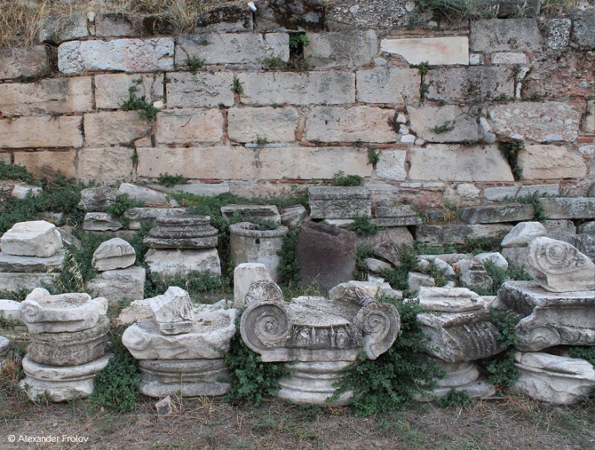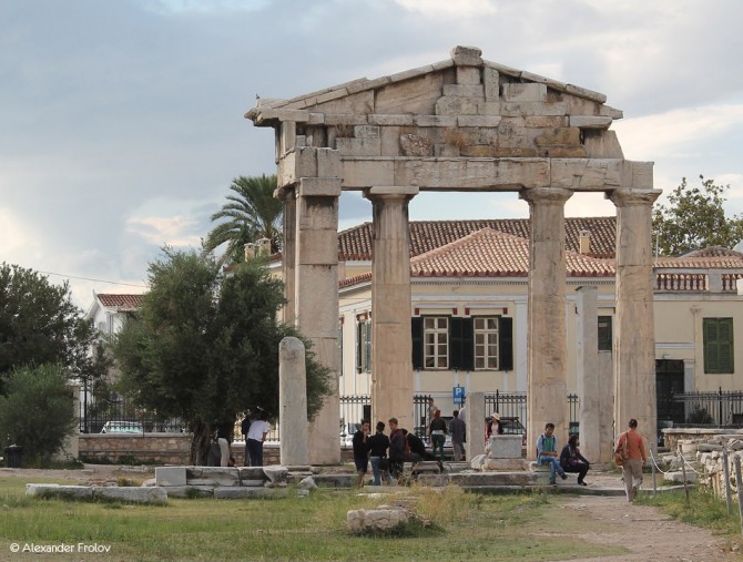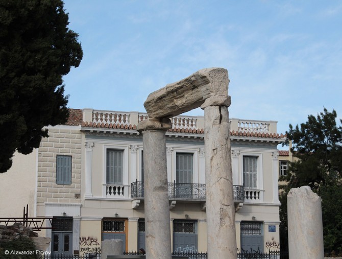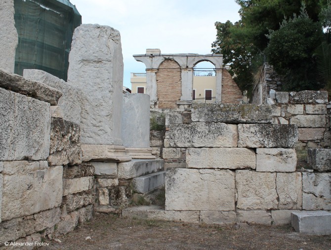 The Roman Agora is located on the north side of the Acropolis, a short distance from the eastern side of the Ancient Agora of Athens and they are connected with a narrow paved road. It was built between 19 and 11 BC in honor of Julius Caesar. During the reign of Emperor Hadrian, it was paved with slabs. After the invasion of Heroulis in 267 AD, the city of Athens was merged in the area within the Roman city walls, and the administrative and commercial center was moved from the Ancient Agora to the Roman Agora and the Hadrian’s Library. The Roman Agora consists of a large open courtyard surrounded by columns on all four sides. On the eastern side of the Agora there were a large number of shops, while on the west side there was a fountain. Its main entrance was on the west side, known as the Gate of Athena Archigetria, and there was also a second entrance on the east side leading to the public baths and the “Tower of the Winds.” The impressive Tower of the Winds is an octagonal building height of 12 meters which functioned as weather station and was built with Pentelic marble from the famous astronomer Andronicus around 50 BC. It had a water clock that fed a water tank on the south side of the tower and a mechanical structure inside which could represent the sun, the moon and five other known planets of that time. The reliefs representing the eight different winds and their personalities, in each of the eight sides of the tower, is the most beautiful part of the tower and worth to look at it. In early Christian times, the bell tower was used as belfry of a neighboring Byzantine church. During the Ottoman occupation turned into “opium den” and it was a place where the dervishes (Muslims monks) were gathering. After the necessary demolitions and expropriations of private buildings, a series of excavations undertaken in the periods (1837 – 1931) and (1963-1964), brought into light the ancient ruins of the Roman Agora of Athens in its current form.