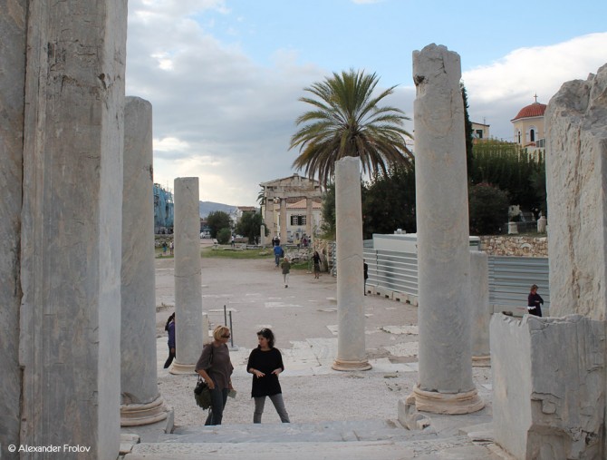 В древности это был огромный прямоугольный атриум 111 на 98 метров окруженный арками, магазинами и складскими помещениями. До наших дней сохранился ионический внутренний двор, датируемый II веком н.э.. Но лучше сохранились колоннады южной и восточной стороны и ворота. В северной части комплекса находятся руины общественных туалетов построенных в первом веке до н.э.. На восточной стороне Римской Агоры было большое количество магазинов, а на западе располагался фонтан. Ее главный вход был на западной стороне, известный как ворота Athena Archigetria, но был также и второй вход на восточной стороне, ведущей к баням и к "Башне Ветров". Впечатляющая Башня Ветров это восьмиугольное здание высотой 12 метров фунционировшее как метеостанция было построено из пентелийского мрамора знаменитым астрономом Андроником примерно в 50 году до н. э.. В раннехристианские годы башня использовалась в качестве колокольни византийской церкви неподалеку. А во времена турецкой оккупации и вовсе была этаким притоном бродячих монахов-мусульман.