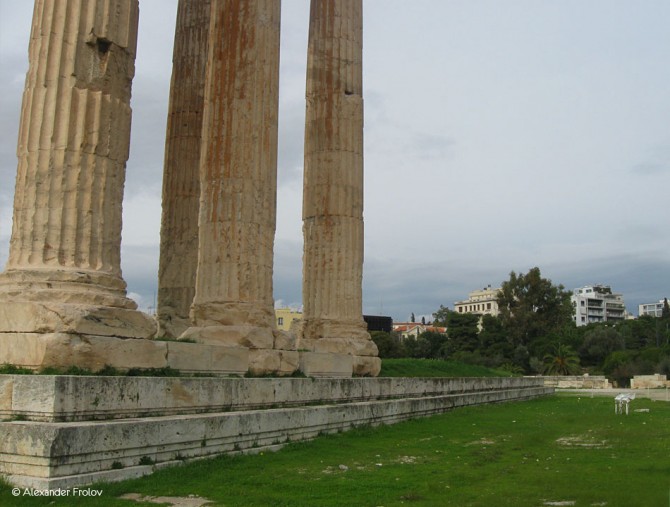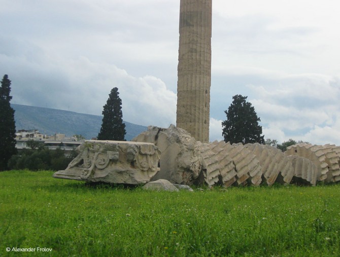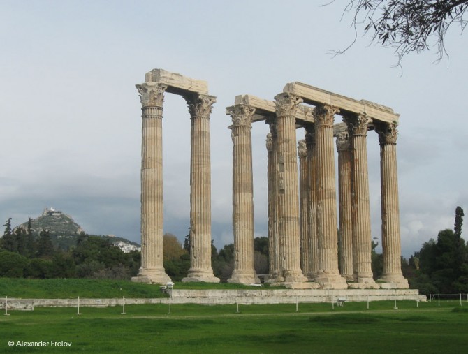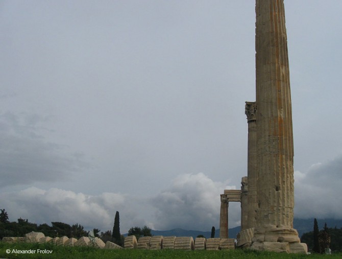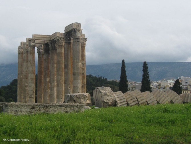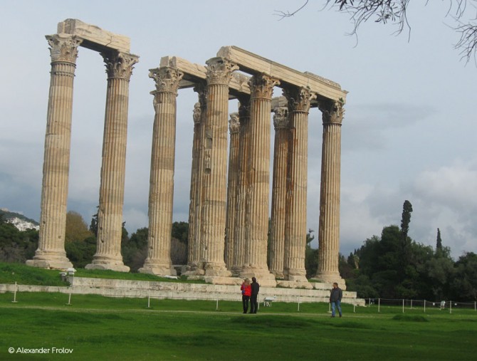 Храм Зевса Олимпийского в Афинах считается своего рода рекордсменом. Во первых - это самое большое здание, построенное когда-либо в Греции, его длинна равнялась 110,35 метрам, а ширина 43,68 . А во вторых - настоящий "долгострой". Возводился храм на протяжении целых 650 лет. Возведение было начато в период тирании Писистрата в в 515 г. до н. э., а закончено лишь во II веке нашей эры - при римском императоре Адриане, большом поклоннике греческой культуры. Местность вокруг храма издавна считалась священной. Древние афиняне верили, что южнее храма существовала трещина, в которую ушла последняя вода после потопа Девкалиона. Там же находились родник Каллиори и пещера Нимф. В этих же местах совершил свой подвиг последний царь Афин Кодр, пожертвовавший собой ради спасения Афин во время войны с дорийцами. Возле родника Каллиори собирал своих учеников Сократ.