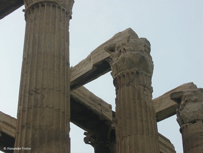 В 175—164 гг. до н. э. достраивать Храм Зевса (уже в коринфском ордере) принялся царь эллинистической Сирии Антиох IV Эпифан. А в 84 году до н. э. римский диктатор Сулла, имевший обыкновение увозить в Рим всё, что ему приглянется, снял с колонн Зевса несколько роскошных резных капителей и употребил их для строительства храма его римского аналога — Юпитера Капитолийского. Но даже не смотря на это ограбление, историк Тит Ливий почти столетие спустя называет афинский Храм Зевса “единственным на свете, достойным этого божества”. Легко понять его восхищение: стоящие 15 колонн относятся как раз ко времени Антиоха.