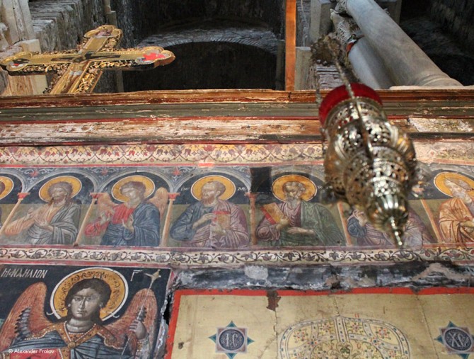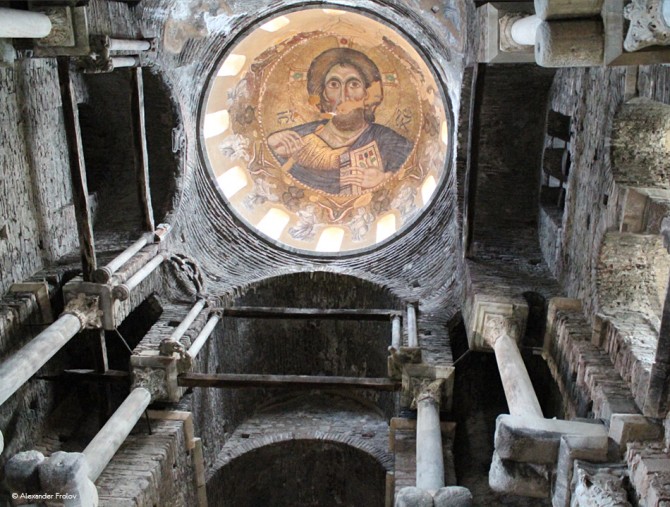 It is the 13th-century Byzantine metropolitan church of the city of Arta and it was founded in 1285-89 by the Despot of Epirus, Nikephoros I Komnenos Doukas (1268–1297), and his second wife Anna Kantakouzenou. The imposing church is a large, almost square three-storey building, with the central dome supported by eight piers divided into three tiers. There are also four smaller domes on each corner of the church’s flat roof, and a lantern. Its interior decoration is rich, with marble revetment up to the level of the galleries, and extensive surviving mosaics and frescoes above that. The temple and the name of Parigoritria (Consolation in Greeks) came from an extremely beautiful folk legend: The master builder who was building the temple was a famous craftsman. During the building of the temple, he had to leave far for too long, since he had been invited to send the plans of another church. That is why his assistant took his place. But the assistant changed the plans and the church became far more beautiful than it was originally designed. When the foreman returned and saw the result, felt jealousy. To punish his assistant for his initiative, he invited him to the roof in order to show him some mistake and he pushed him down. But as the apprentice was falling, he caught the foreman and dragged him with him. People believe that the corpses of both were petrified and they are now preserved on the back of the church: two reddish stones. After their death, Virgin Mary appeared to the mother of the foreman to console her for the unfair loss of her son. So the church got this name.