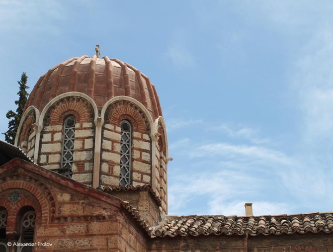 Walking on the quaint backstreets of Plaka, in the junction of the streets Chairefontos and Galanou, you will meet a beautiful Byzantine church. It is the church of Agia Aikaterini, built in the first quarter of the 11th century AD on the ruins of the temple of Artemis. In the Romans time, in front of that ancient temple, the Emperor Hadrian had built a Roman bath house, as a gift to the Athenians (along with the Hadrian’s Library in Monastiraki, the Hadrian’s Gate in Vasilissis Amalias Avenue and the Hadrian’s Aqueduct in Kolonaki). Today, only a few remnants of the ancient past of the place are still preserved inside the church, such as the stone pillar of the Classical Times which support the marble Communion Table.