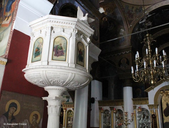 В нынешнем Храме Святой Екатерины о древнем прошлом напоминают лишь каменные столбы, которые поддерживают мраморный престол.