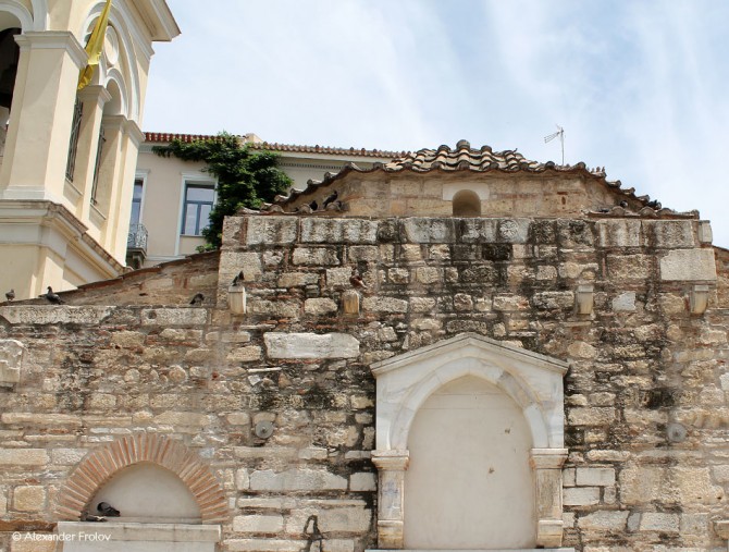 It was built between the late 8th and the early 9th century and was dedicated to the Mother of God. It is an arch-roofed three-aisled basilica and used to be the church of the Monastery “Big Monastery”, which occupied the area of the current square of Monastiraki and was demolished in 1870-1880. Actually, that is how the whole area got its name.