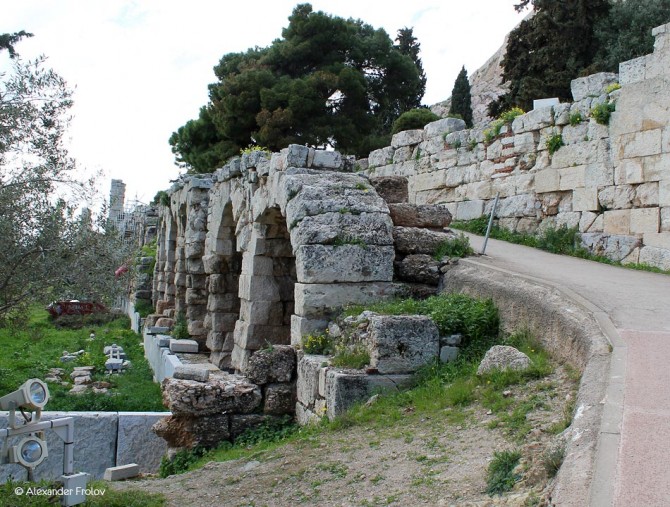 Between the Theater of Dionysus and the Odeion of Herodus Atticus, in the south slope of Acropolis, there is another monument that worth a visit.