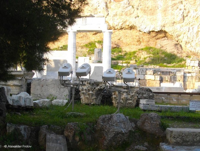 Асклепионов в Греции немало - самый крупный из них находится на Пелопоннесе, а один из расположен рядом с афинским Акрополем, на его южном склоне. Афинский Асклепион считался вторым по важности храмом города после храма Диониса. Он был построен в 420-19 годах до н.э. и состоял из алтаря и трех аркад. Считается, что Асклепеон был частично разрушен в 86 году до н.э. римским Суллой или в 267 году н.э. герулами. Однако, был восстановлен почти сразу же. В дальнейшем, V или VI веке храм был снова разрушен, на этот раз византийцами, которые возвели на месте Асклепиона трехнефную базелику, посвященную Святому Анаргирусу. Дальше, после турецкого вторжения, начиная с 1457 года здание было полностью заброшено.
