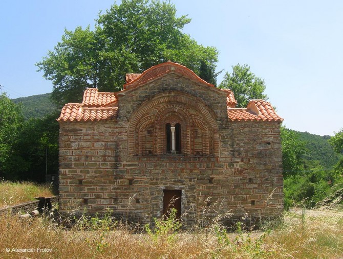 The Red Church took its name apparently from the impressively red bricks that was built of. Its type is a two column cruciform church with a single three-sided apse and a tripartite narthex. Built at expenses of Theodoros Tsimiskis, who was official of the Byzantine Court, it is believed that in the past belonged to a royal monastery that was later abandoned and today unfortunately none of its other buildings is preserved. For this reason though, the Red Church is often called “royal monastery”. Later it became a dependency in the monastery of Vellas (which is located in the village Kalpaki of Ioannina), hence its second name “Panagia Vellas”.