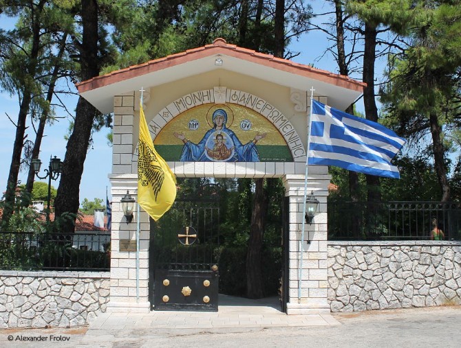 Монастырь посвящен Деве Марии, а его название в переводе означает “явление”. Это название напрямую связано с главной иконой, украсившей монастырь. По традиции того времени монастырь заказал иконы монаху и иконописцу Каллисту в Константинополе. Что бы обрести вдохновение Каллист долго держал пост и молился. А потом чудесным образом рисунок иконы сам появился на деревянной доске. Иконописцу же осталось лишь нанести на нее цвета. Так монастырь получил свое название. К сожалению в наши дни можно увидеть лишь копию той чудотворной иконы, так как она была уничтожена при пожаре в 1887 году. В том же году монастырь был восстановлен, а на Афоне была написана копия иконы.