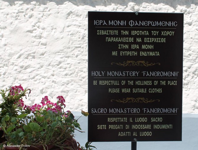 The monastery is dedicated to the Virgin Mary. The name Faneromeni means “Revealed” and is referred to the amazing icon of the Mother of Lord that adorn the monastery’s church. The story of this icon is extremely interesting. According to the tradition, the monastery ordered the painting of the icon to the monk and iconographer Kallistos in Constantinople. In order to get inspiration, the monk prayed a lot and fasted. And then, miraculously, the design of the icon was revealed on the wood, and Kallistos had only to add the colors. Unfortunately, today you can only see a copy of this miraculous icon, painted in the Mount Athos in 1887, because the original one was destroyed by fire along with the church of the monastery. However it was rebuilt in 1887 as well.
