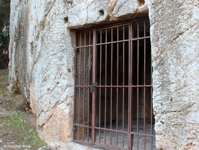 Walking on the main pedestrian which starts from the Dionisiou Areopagitou street, and passing in front of the historic church of Agios Dimitrios Loumpardiaris, 100 meters ahead, at the foothills of Filopappos hill, you will see a cave with windows with bars. The urban legend and the tradition say that this cave was the prison of the great Greek philosopher Socrates and the place where he spent his last moments before he drink the hemlock -probably because of its proximity with the Ancient Agoraof Athens. According to other theories, however, this building was a house of the 4th century. In any case, the fact remains that in ancient times, they used to carve buildings in the rocks (architectural practice which is widespread in Santorini) and this particular building was a two-storey or even a three-storey construction. The building had been used also in modern history, during the Second Civil War, as a cache for the ancient treasures of the Acropolis and the Archaeological Museum.