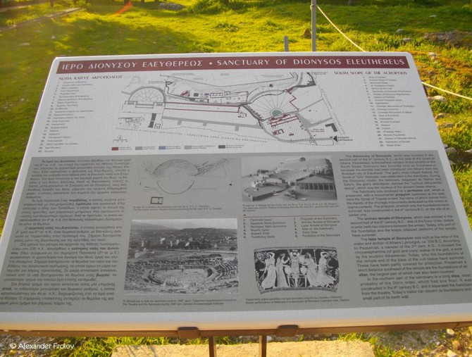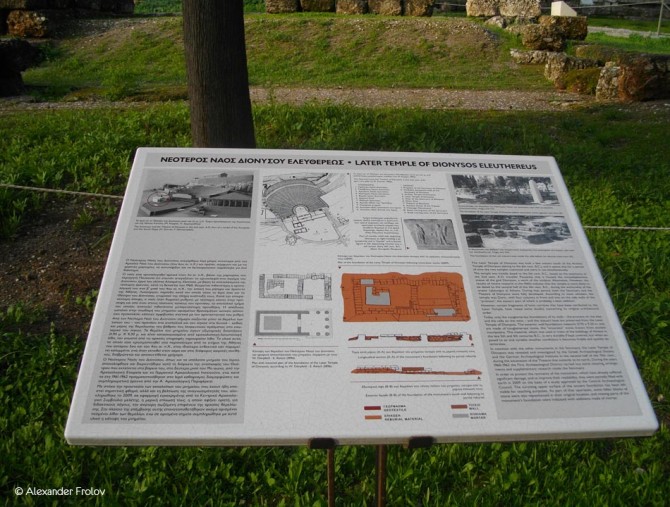 The temple was founded in the 6th century BC, probably by the ruler Peisistratos or his sons, who brought the cult of Dionysus from Eleftheres of Boeotia in Athens (hence the surname “Elefthereos”). Every year, in the month Elafivoliona (end to March-early April), in this temple a big feast was taking place, the so-called Great Dionysia, which was the brightest feast in honor of the god.
