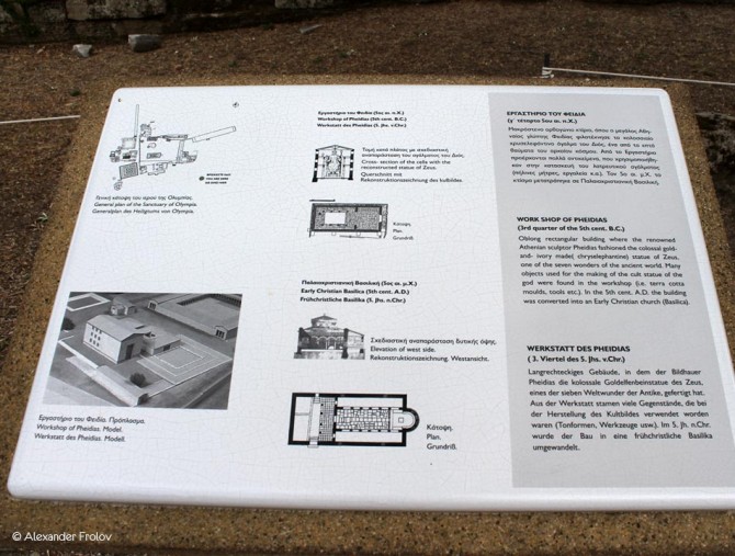 In the beginning, the sanctuary had no buildings at all, just a few altars inside Altis, which was surrounded by a precinct, while the faithful were hanging their offerings in the branches of the trees.