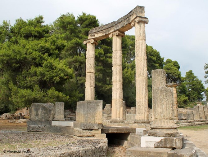 Покоривший в 338 г. до н.э. Элиду царь Македонии Филипп II (отец Александра Македонского) нарушил гармонию святилища, повелев выстроить в честь победы необычный круглый храм – Филиппейон. Этот храм был одновременно герооном (святилищем героя) и сокровищницей. Еще один героон был выстроен ранее за стеной Альтиса и предназначался для восхваления олимпиоников.