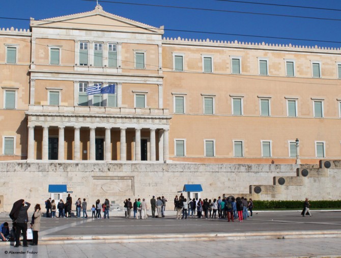 Бывший королевский дворец, по традиции охраняемый эвзонами, выходит окнами на площадь Синдагма. Его считают своего рода символом Афин. Монархия давно упразднена, но дворец “при деле” - здесь заседает греческий Парламент.