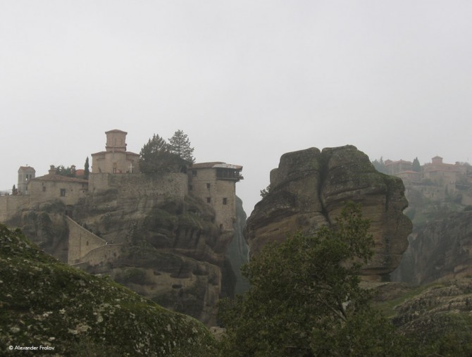 Метеоры - это один из крупнейших и почитаемых комплексов православных монастырей в Греции, второй после горы Афон. Это название по-гречески может означать “между небом и землёй”, “зависший в воздухе” или “на небесах”, т.е. нечто этимологически связанное со словом “метеорит”. Шесть монастырей были построены на природных скальных столбах на северо-западной окраине Фессалийской равнины неподалеку от реки Пинеос и горного массива Пинд. Скалы, на которых выстроены монастыри считаются редким геологическим явлением. В высоту они достигают 600 метров, а образовались 60 миллионов лет назад. Считается, что они были каменистым дном доисторического моря, находящегося на месте равнины. Неудивительно, что Метеоры включены в список всемирного наследия ЮНЕСКО.