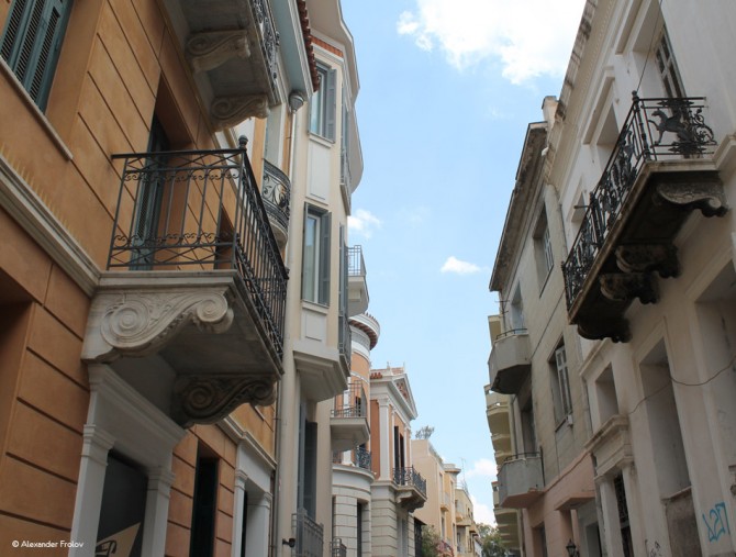 Среди современных многоквартирных домов и высотных зданий, по-прежнему живет дух старого города. Это относится к зданиям прошлого и позапрошлого веков, служащим этаким “довеском” зданиям современным. И напоминающим нам, как Афины выглядели десятилетия и даже столетия назад. Старинная лепнина, резные перила на балконах, интересная форма крыш. Некоторые из этих домов хорошо сохранились и в них, по-прежнему, живут люди. Другие же оказались заброшенными, сохраняя в своих стенах лишь воспоминания прошлых лет. Наиболее примечателен в этом плане район “Керамейкос”. Тут можно сказать “два в одном” - люди в старинных домах живут, но дома эти весьма обветшалы. Былая роскошь сменяется убогостью нелегальной миграции. Спасение пока видится только в одном: в богемной молодежи. Когда молодые люди без комплексов поселяются в облезлых, некогда роскошных особняках - жизнь сразу удивительным образом налаживается. “Потертость” как правило никуда не девается, но появляется дружелюбная атмосфера. А уровень преступности как-то сам собой исчезает.