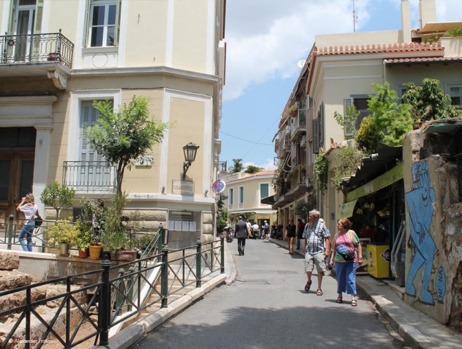 Плака граничит с другими важными районами - с Монастираки, Тиссио, Анафиотикой. Последний это нечно особенное - глиняные дома, возведенные прямо у стен Акрополя выходцами с острова Анафи, в которых по-прежнему живут люди.