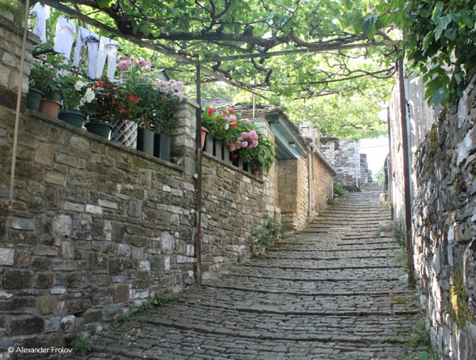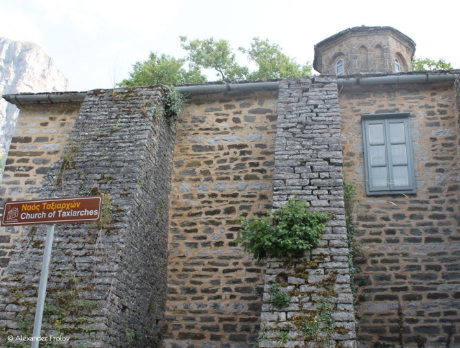 Деревня Микро Папигко (“микро” означает маленький) находится в Загори, всего в двух километрах от своей “старшей сестры” деревни Мегало Папигко, но несколько выше нее. Путь сюда в любом случае лежит через Мегало. Оба села роднит типичная деревенская греческая архитектура, маленькие мощеные улочки - все то, что мы привыкли видеть в греческой деревне. Но не только. Отсюда открывается потрясающий вид на природный бассейн ущелья Викос, причем, из расположенной выше “Микро” видно, понятное дело, больше. Но самый захватывающий вид на Викос открывается от местного храма Megalon Taxiarxon, который можно назвать жемчужиной этой деревни. Еще одна особенность здешних мест - непрекращающийся звук льющейся воды.