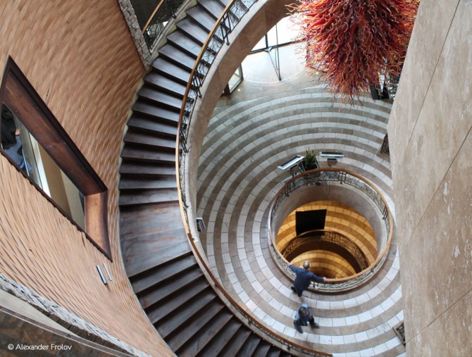 Отдельного упоминание заслуживает само здание из которого начнется путешествие - это многоэтажное строение с винтовой лестницей (лифт тоже есть), оформленное произведениями искусства.