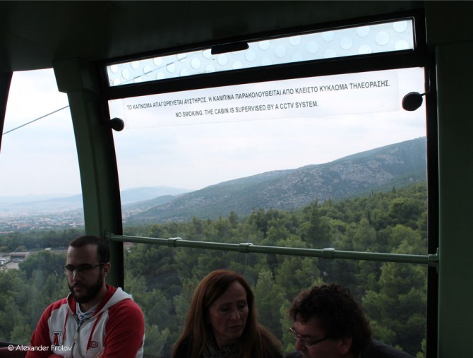 Если вы решили поехать к горе Парнида, что расположена в часе езды от Афин - то безусловно стоит прокатиться на фуникулере. Сразу скажем - поездка эта бесплатная, так же как и парковка у так называемого вокзала. Собственно, это не просто прогулка по канатной дорожке, а путь в казино. Но не стоит волноваться, если азартными играми вы не интересуетесь - тут можно побывать в ресторане из которого открывается захватывающий вид на Афины. И даже если посещение ресторана не входит в ваши планы - кататься на фуникулере можно столько раз, сколько душа пожелает. Кабинки вместимостью 8 человек отправляются каждые пол минуты, весь путь составит 7 минут. Кстати, стекла в кабинках достаточно чистые - можно сделать немало неплохих снимков, а если фотографирование не манит - можно просто обозревать Афины и леса. Там же, у казино есть смотровая площадка.