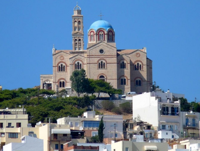 The trademark of Cyclades islands is the singular architectural style: whitewashed rectagular houses with blue (and rarely red) window shutters and doors. Syros makes the difference. Ermoupolis, the main town and port of the island, is surprisingly full of beautiful neoclassical buildings, making its own architectural statement. The great Greek politician Eleftherios Venizelos had said once that Greece was reborn in Syros,while the traveler Theophilus Gautier, when he visited the island early last century, wrote: “An Hungarian orchestra played excerpts from Italian operas. The impression was excellent. Syros is almost the navel of Greece, and the capital of elegance and nobility. Who really would have thought that they would meet this kind of world planted on a rocky island in the Aegean Sea!”.