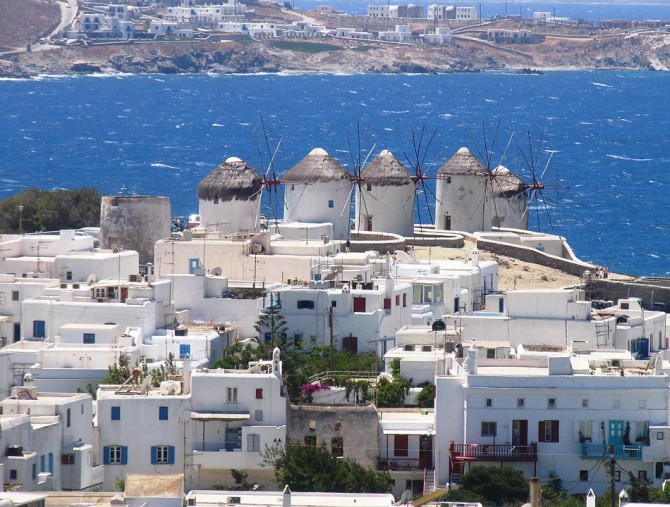 Одна из характерных деталей Миконоса - ветряные мельницы, которые сразу же бросаются в глаза всем, кто только прибыл сюда на пароме.
