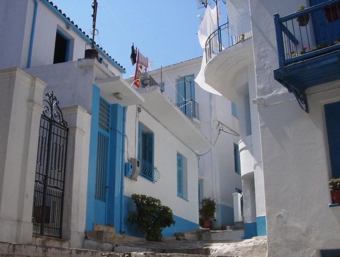 Its main town and port, called Chora, has been declared traditional settlement. What makes this seaside town special is the architecture of its houses, where one can distinguish four main types: Venetian influences, Pelion-Macedonian style, rural and neoclassical, the one next to the other making a singular combination. Among the sights of the Chora of Skopelos the ones that stand out is the House-Museum Of Pavlos Nirvanas, the great Greek novelist who was born in the island, the beautiful temple of Panagia of the Tower, which stands on a rock at the edge of the harbor blessing endlessly the sea, and the Venetian Castle which is next to this church and is built in the place of ancient Peparithos.