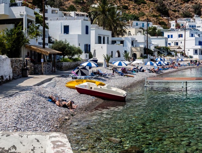 The two beaches of the small bay are cute and the waters are always calm. These are not the only options for swimming in Loutro though, since every day a boat leaving from the Loutro’s port will take you to two other beautiful beaches, Glyka Nera (to the east) and Marmara (to the west). Or you can also rent a canoe and explore the beaches of the area (which is the best idea of all).