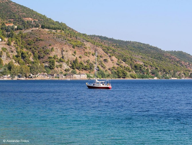 - на машине из Агия Анна (18,2 км) по местной трассе Строфилия-Ровиес