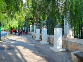 Бюсты Софокла, Эсхила и Еврипида у входа в Национальный сад