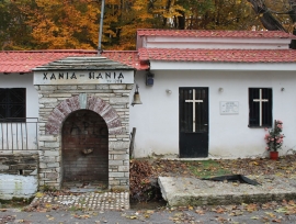 Неподалеку от монастыря расположена большая пещера, где по преданию пастухи нашли чудотворный образ Богоматери Одигитрии работы евангелиста Луки