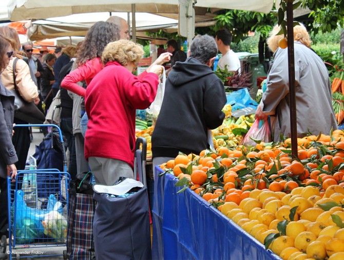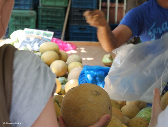 Чтобы оказаться на овощном рынке в Афинах, сильно стараться не надо. Надо просто выйти из метро. Практически, из любого (впрочем, мы рекомендуем конечную станцию “Агия Марина”). И дальше сразу начинаются всевозможные фрукты-овощи-цветы, покупатели и продавцы. Причем, последние тут - отнюдь не овощи. Разговаривают друг с другом так что мало не покажется - в смысле громкости и жестикуляции. В общем, без нескольких килограмм всякого разного и ярчайших впечатлений не уйти. Да и стоит ли уходить без них? Радость общения еще никто не отменял.